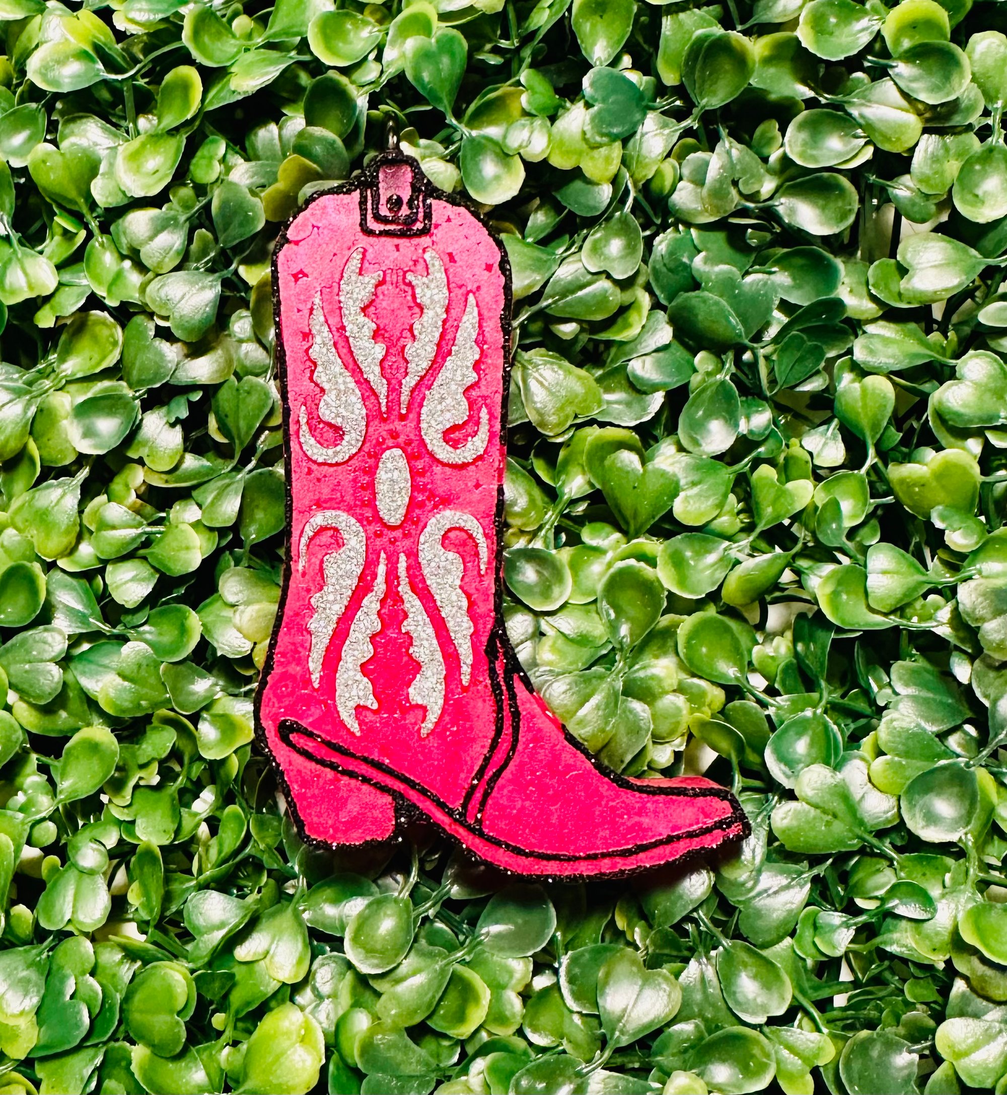 Saddle up and freshen up with our Cowgirl Boot Freshie! This western-inspired air freshener brings a perfect blend of rustic charm and sweet fragrance to your ride, locker, or room. Whether you're a country girl at heart or just love the western aesthetic, this boot-shaped beauty is ready to ride along wherever you go.