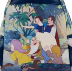 Relive every musical moment from a Disney masterpiece with the Loungefly Disney Snow White Scenes Mini Backpack. This vibrant accessory serves as a wearable gallery, featuring iconic, full-color illustrations from the 1937 classic on every panel.